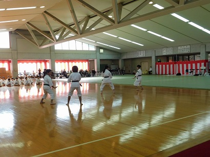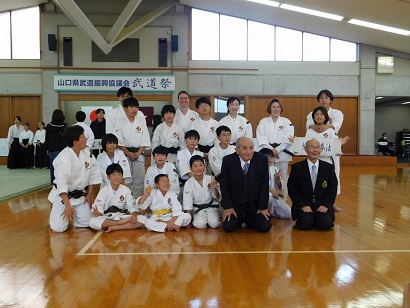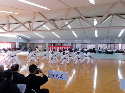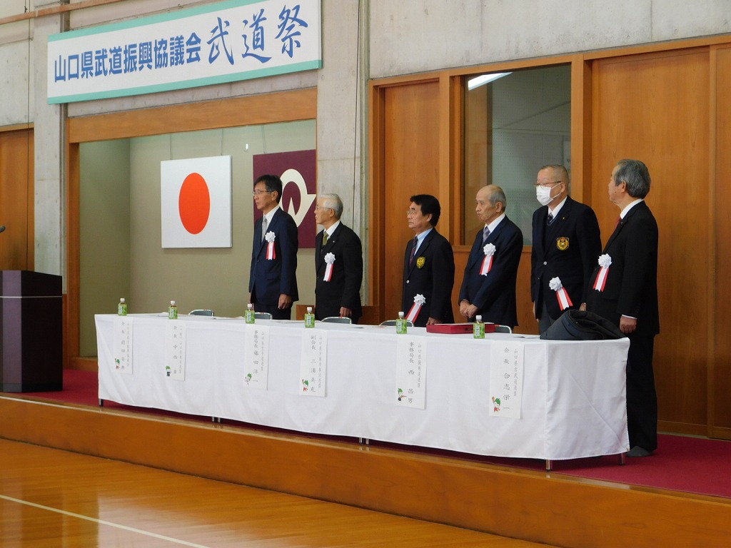 武道祭では山口県の柔道協会、剣道連盟、弓道連盟、相撲連盟、空手道連盟、合気道連盟、なぎなた連盟、銃剣道連盟、古武道連盟、そして少林寺拳法連盟の10団体がそれぞれ10分の持ち時間で演武を披露しました。