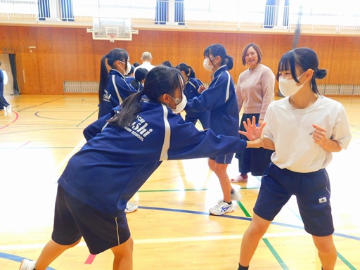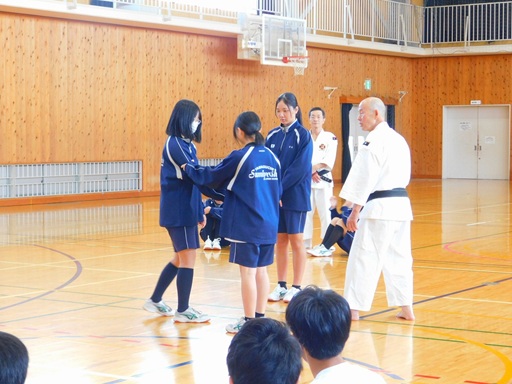生徒の感想では、「楽しかった。」「技が使えるようにしたい。」等があり、短時間の授業でしたが、真剣に取り組んでもらった成果があったように思います。