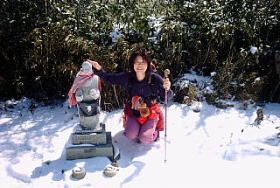 国観(くにみ)峠 灌木帯に囲まれた小広場でかわいい石仏がある |