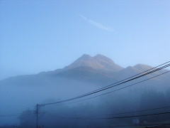 朝霧の由布岳 宿泊したフォーディズ湯布院保養所から朝霧の掛かる由布岳を撮影 |