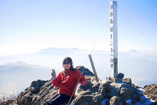 | 2003/1/12 登頂 三回目の登山で余裕が感じられた。1400m地点からアイゼンを装着し登った 今回も東峰に登頂次回西峰に挑戦するぞ 写真左は山頂 後方に九重連山が見える |