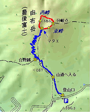 | 2006/1/27 登頂 9:30〜15:30 歩行距離:8.0km R&Sホテル湯布院小原山宿泊 |