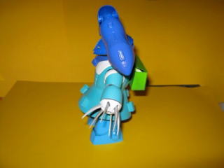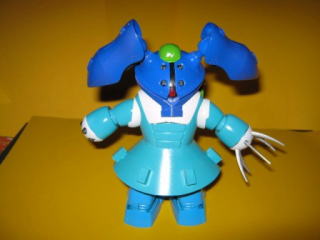 複雑な地形・河川での戦闘を考慮して、頭部にフレキシブルスラスターユニット2基と腰部スカートにハイドロポンプジェットを6基装備したアッガイ