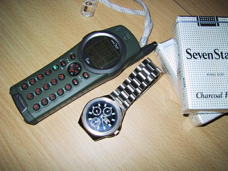 携帯電話と腕時計です。IXY-DIGITALを手に入れて、最初のモチーフです。だんだんデジタル装備されてきました。