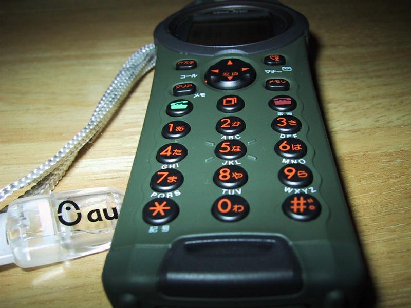 cdmaOneの携帯です。携帯なんてと思ってたんですが、手にしてみるとすごいですね。インタネットで地図までみれます。CASIOのC303CAという機種で水につけても大丈夫です。