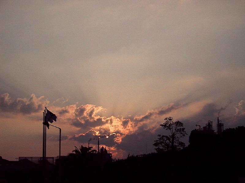 IXY-DIGITALで撮影しました。会社の帰り夕日が綺麗なもので。つい。写真では、分かりにくいですが、このとき、雲のすきまから光がさしてブロッケン現象が発生していました。